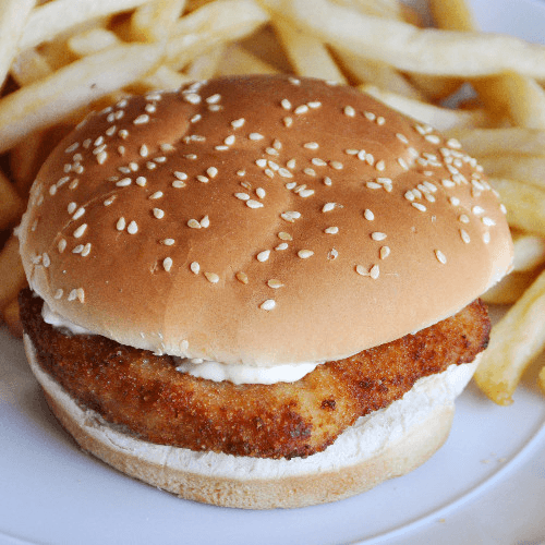 A new burger experience. made from premium white turkey meat, lightly breaded and deep fried to be crispy and moist. Served on a toasted bun topped with our own special sauce. Includes a side dish of your choice and a medium drink.
