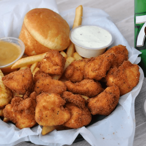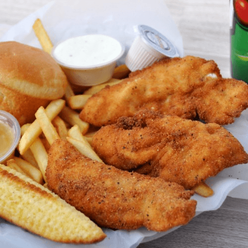 Includes 3 tenders, a side dish of your choice, a roll and cornpone, and a medium drink.
